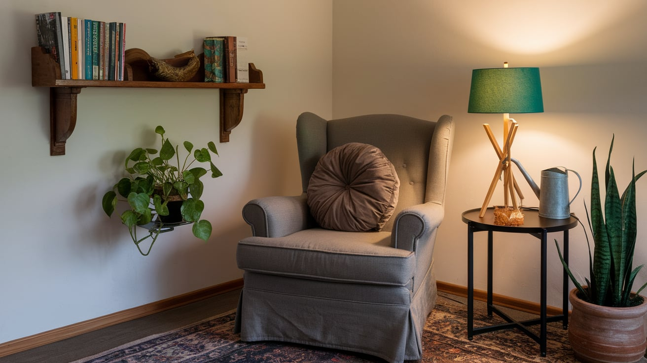 Want your nook to scream glam? Go with a velvet armchair in jewel tones. Add a side table with a gold lamp, and suddenly, your corner looks Instagram-worthy.