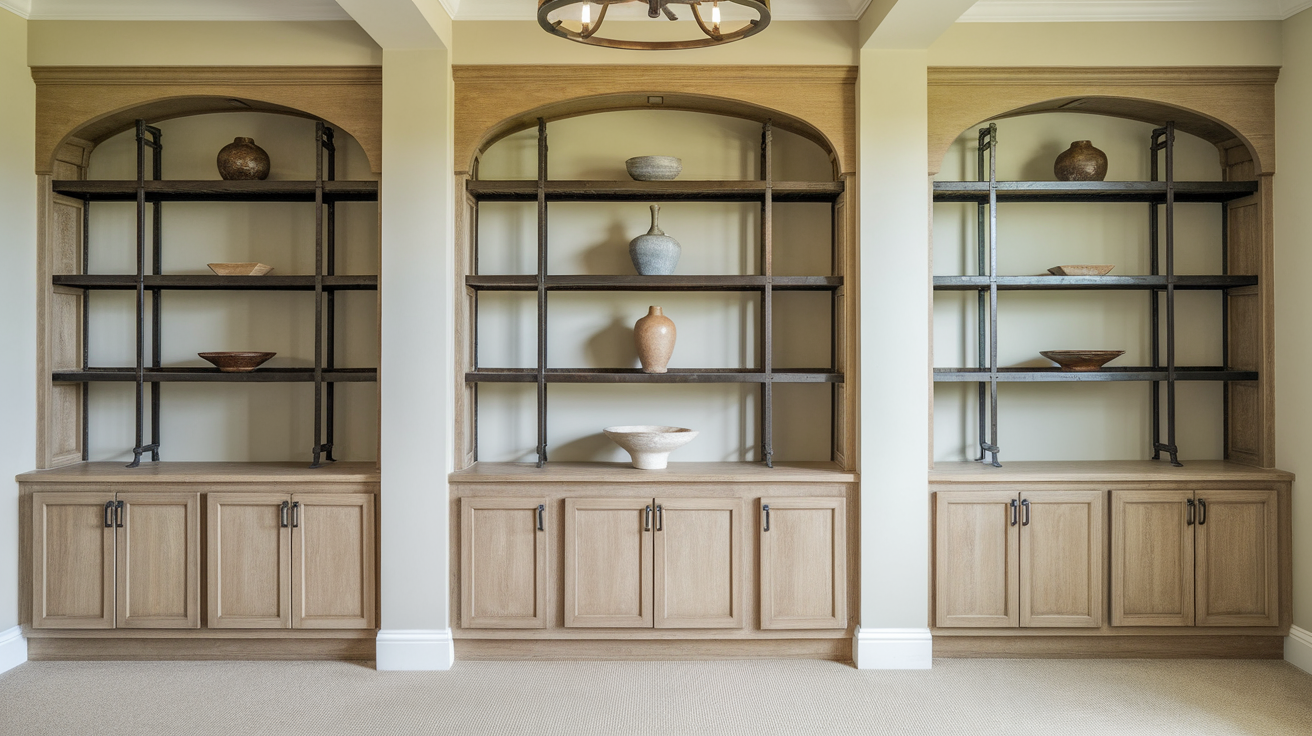 For collectors of figurines, antiques, or travel mementos, curio-style built-ins are ideal. Add lighting and glass panels to highlight your treasures while keeping them safe.