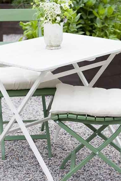My “garden” was just a square of stone, but placing a black wrought iron bistro table and two delicate chairs turned it into a Parisian escape.