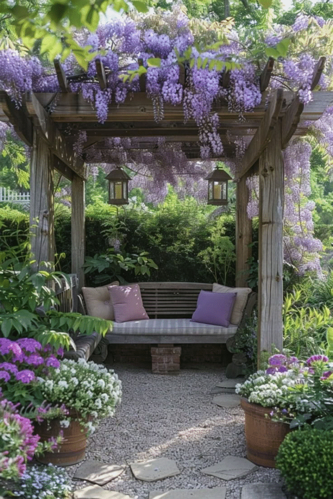 Create a private nook by placing furniture under a pergola. It’s the architectural hug your garden needs.