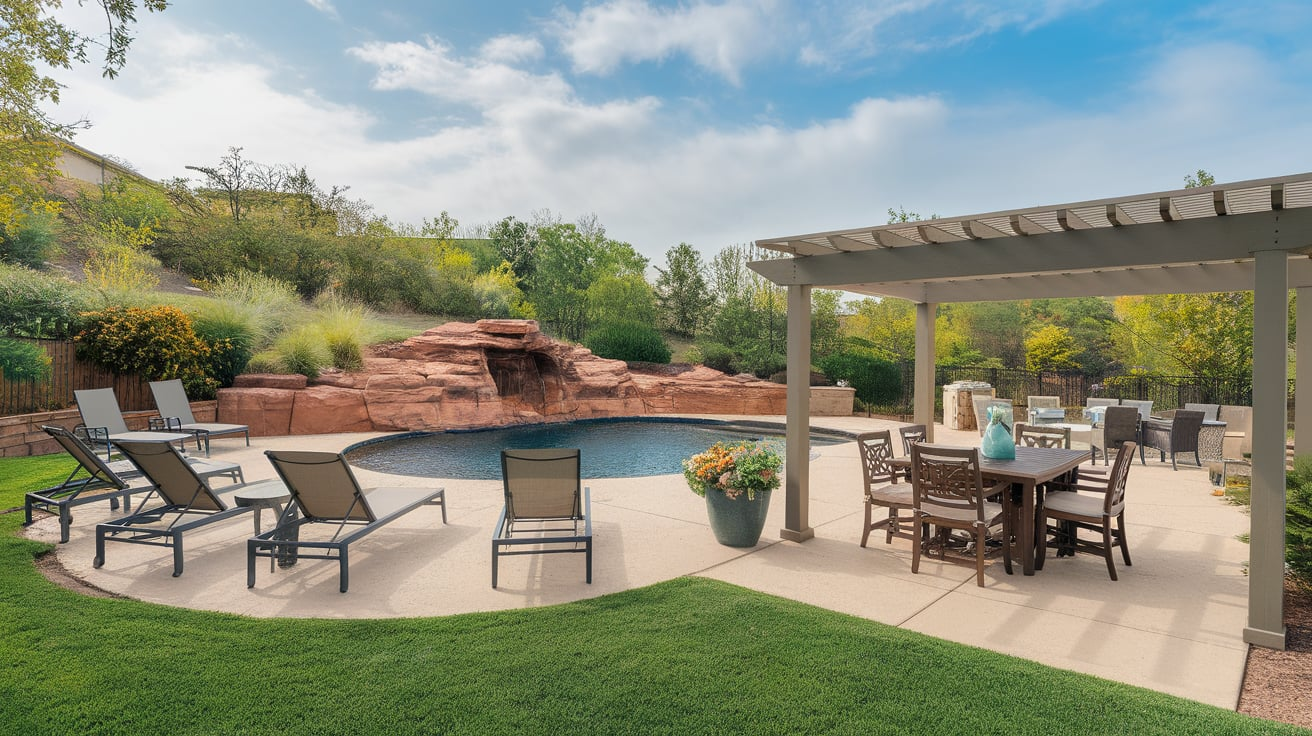 A patio is basically the living room of your backyard. With a large space, you can go big—stone, concrete, or even pavers that create patterns. Toss in a dining table, some chairs, and maybe a pergola for shade. Suddenly, you’re hosting summer dinners like a pro.