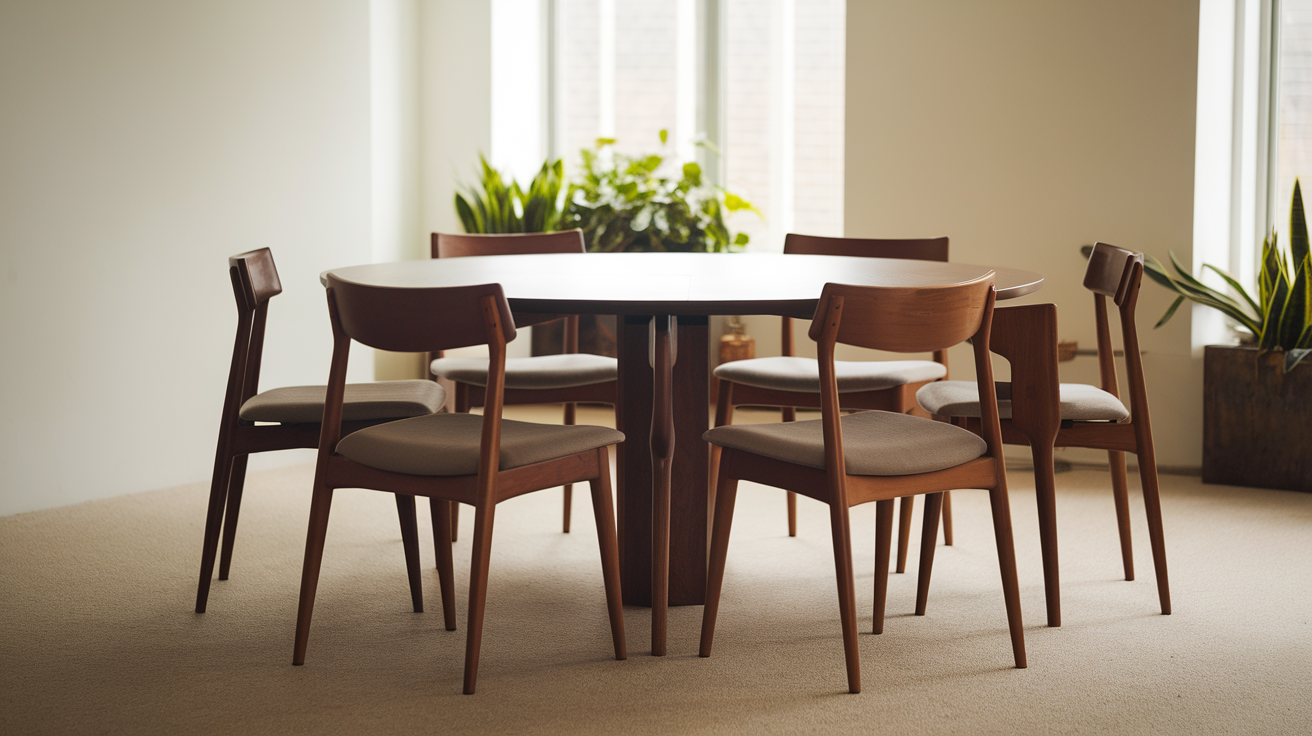 The dining table is the heartbeat of the room. In a mid-century modern setup, look for clean lines, organic shapes, and tapered legs.