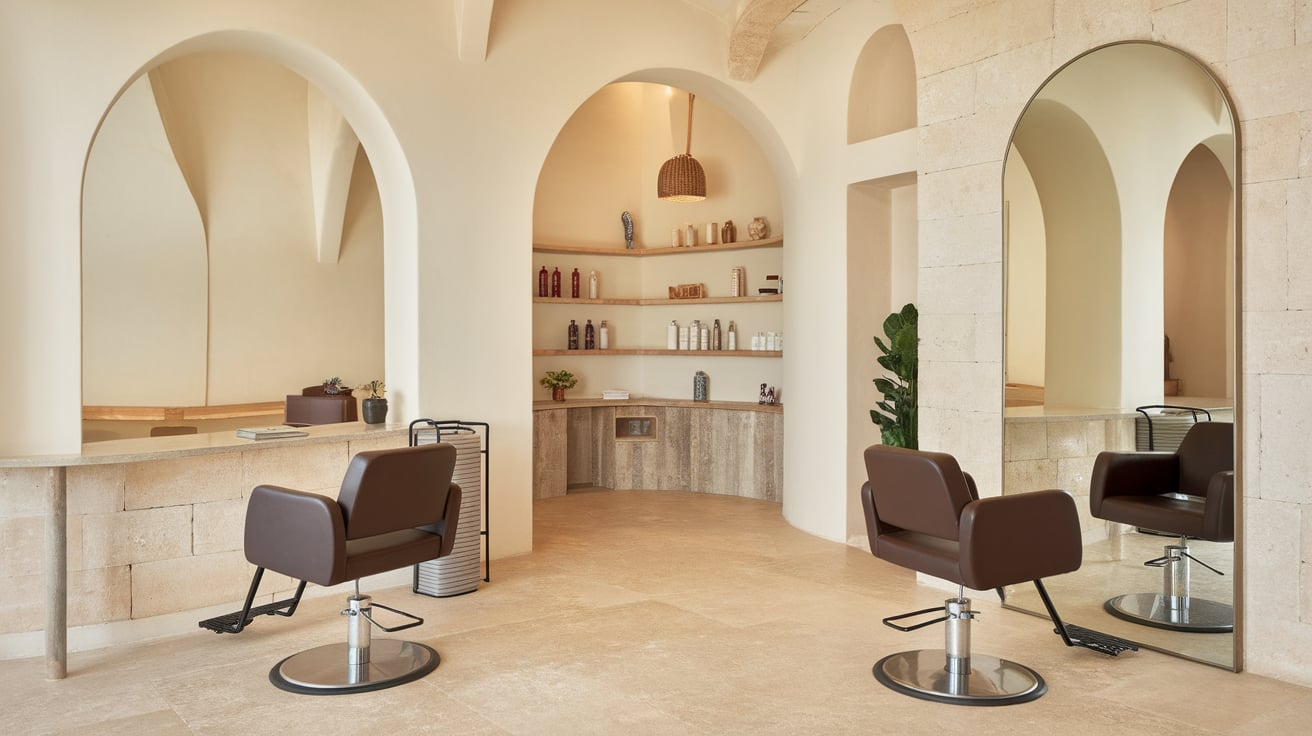 Want your salon to double as a relaxation retreat? Go spa-style: soft lighting, earthy tones, essential oil diffusers, and comfy robes. Clients leave glowing (and not just from the hair color).