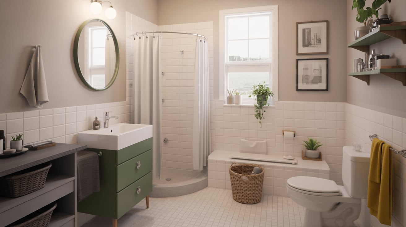Light colors like cream, pale gray, or soft sage make bathrooms feel cleaner and bigger. A single gallon of paint can completely transform the room without spending much at all.