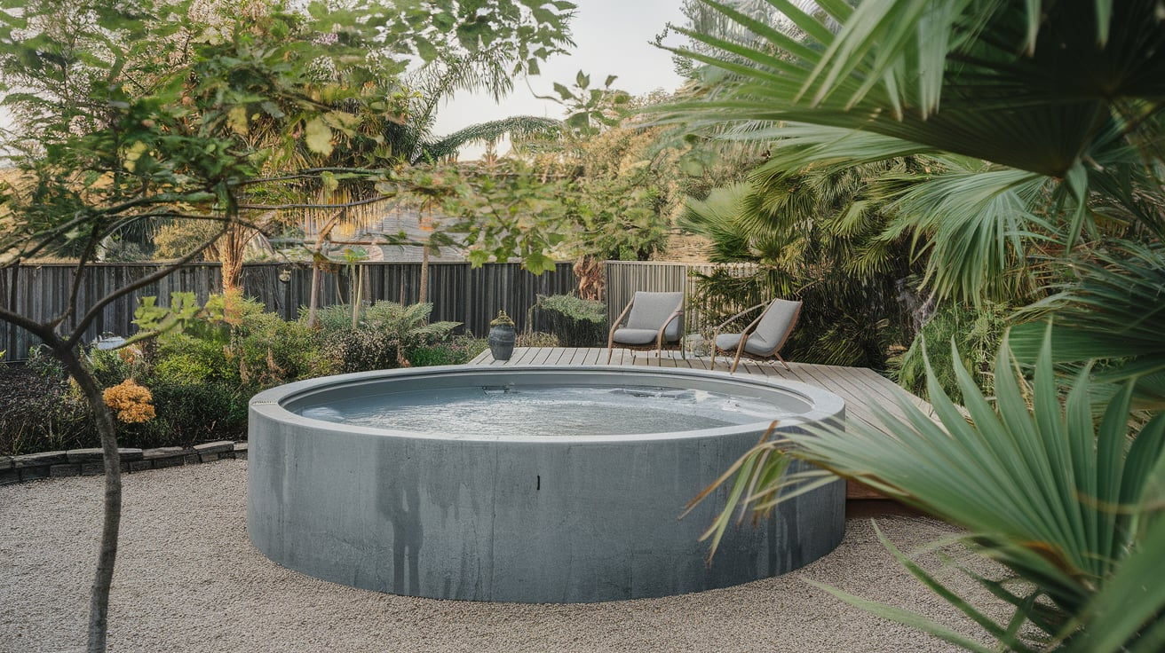 If your style leans clean and contemporary, keep things simple. Surround your spa with concrete pavers, sleek planters, and neutral tones. Less clutter, more zen.