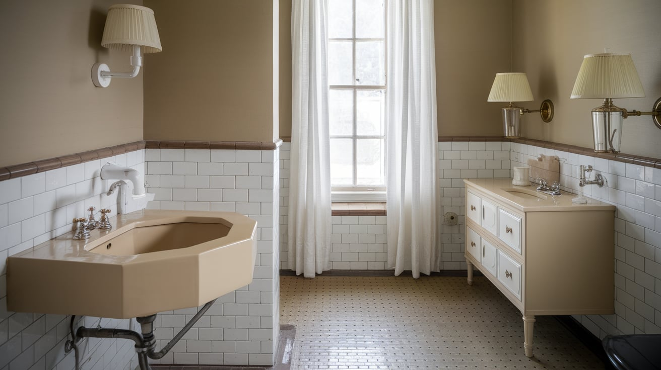 Believe it or not, exposed plumbing was once the norm, not a trendy design trick. Polished brass or copper pipes under a pedestal sink can become a feature rather than something to hide. It adds authenticity to your vintage look.
